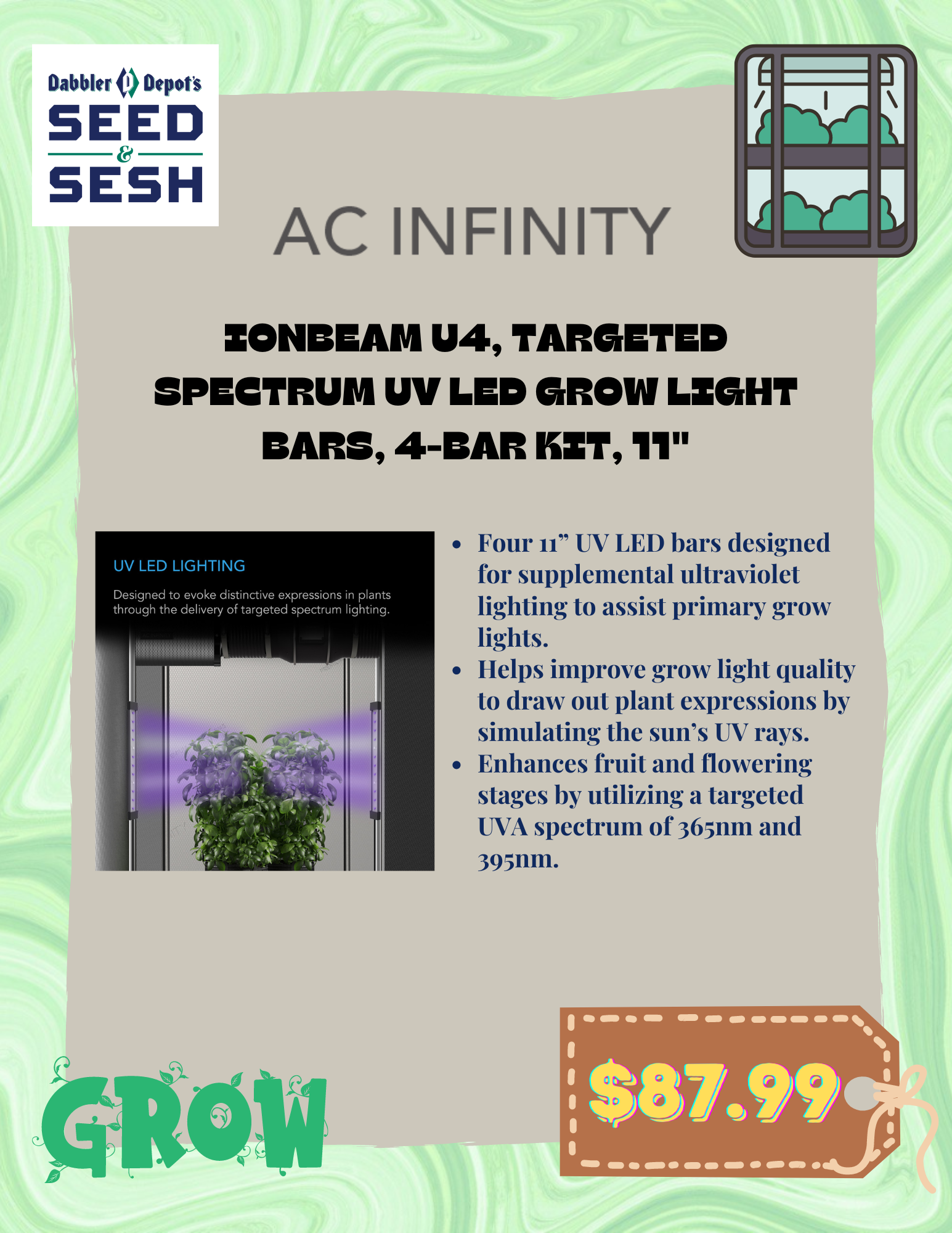 IONBEAM U4, TARGETED SPECTRUM UV LED GROW LIGHT BARS, 4-BAR KIT, 11″ Gallery IONBEAM U4, TARGETED SPECTRUM UV LED GROW LIGHT BARS, 4-BAR KIT, 11″ Grow Equip IONBEAM U4, TARGETED SPECTRUM UV LED GROW LIGHT BARS, 4-BAR KIT, 11″ By Seed & Sesh|2024-07-17T18:13:32+00:00July 17th, 2024|Grow Equip|0 Comments Read More