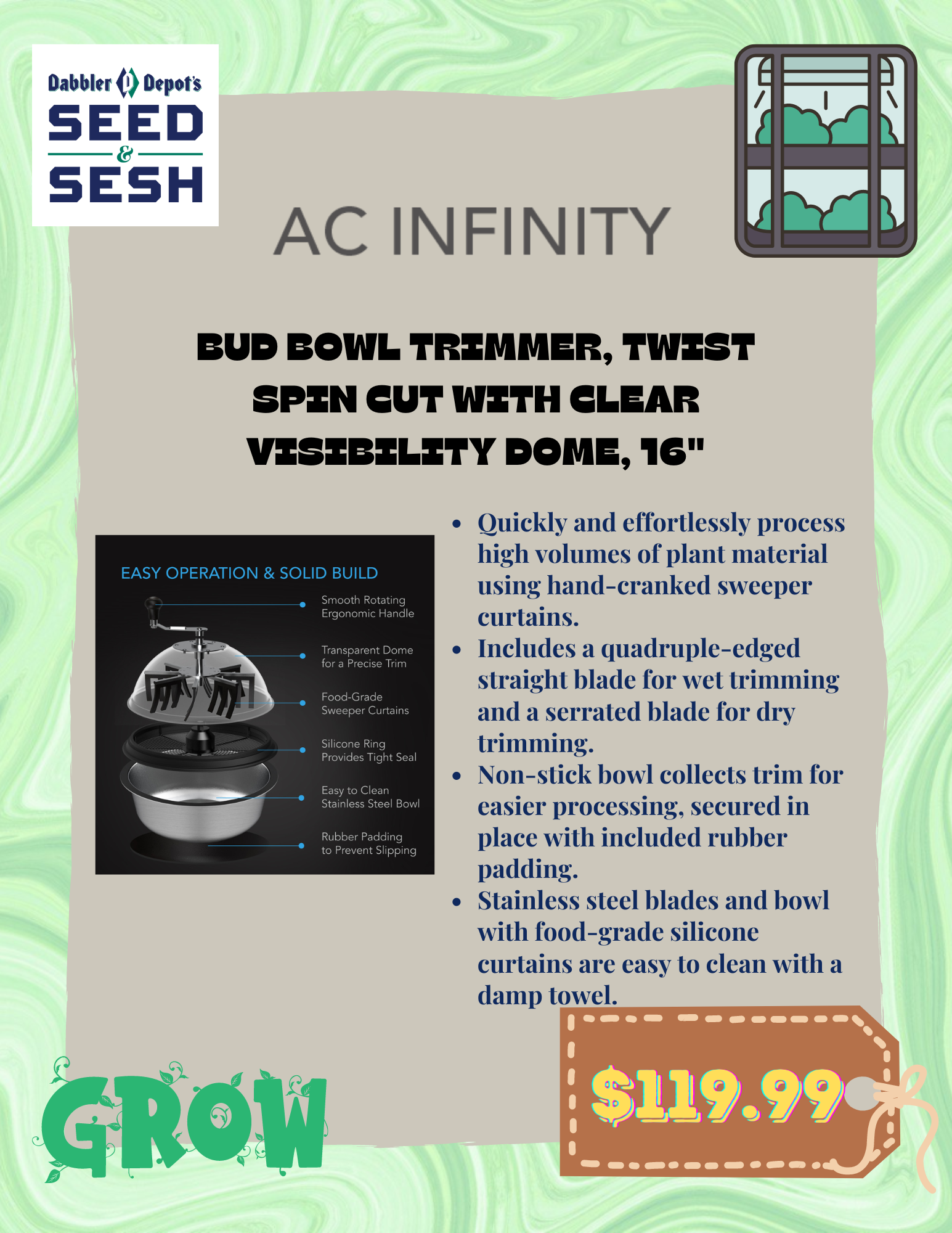 BUD BOWL TRIMMER, TWIST SPIN CUT WITH CLEAR VISIBILITY DOME, 16″